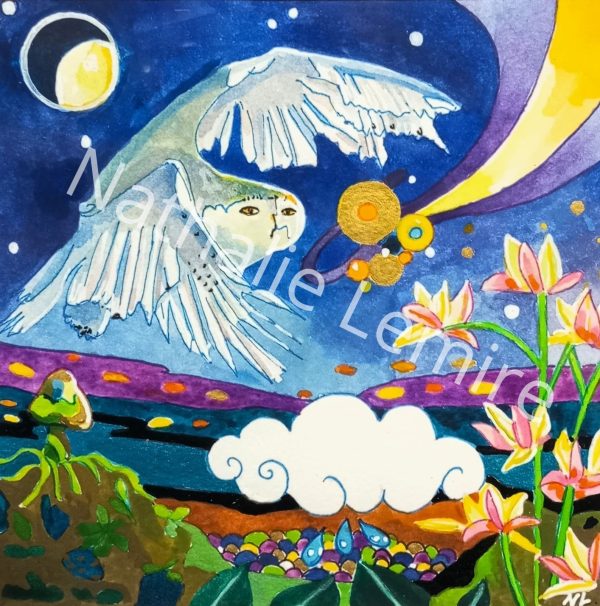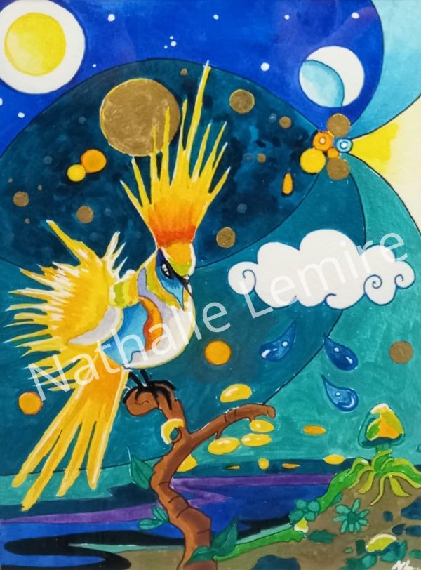 Aquarelle, encres et encre de chine20x20cm Cadre