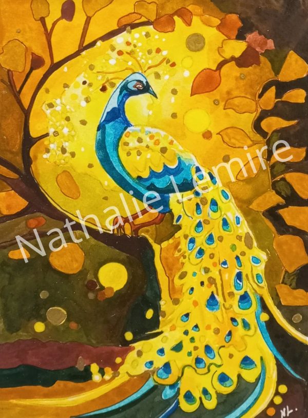 Aquarelle, encres et encre de chine20x20cm Cadre